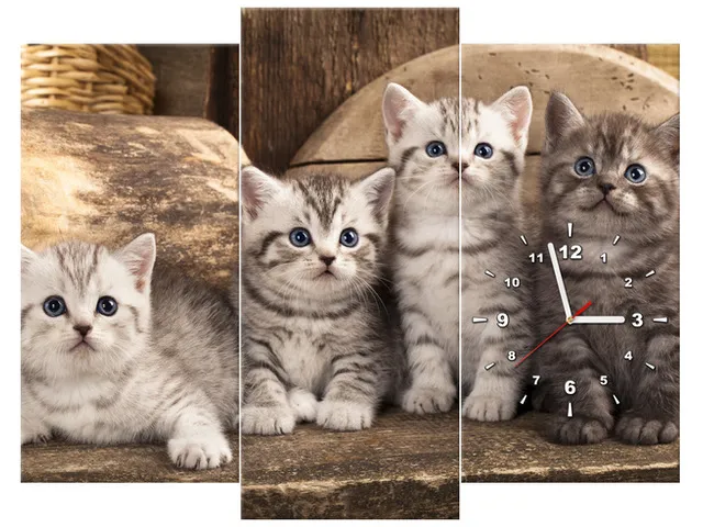 Úvod » Obrazy » Obrazy s hodinami » Obraz s hodinami Britské mačiatka