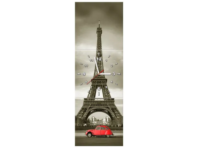 Úvod » Obrazy » Obrazy s hodinami » Obraz s hodinami Červené auto pred Eiffelovou vežou