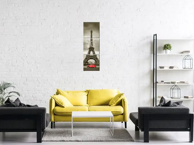 Barion Pixel Obraz s hodinami Červené auto pred Eiffelovou vežou