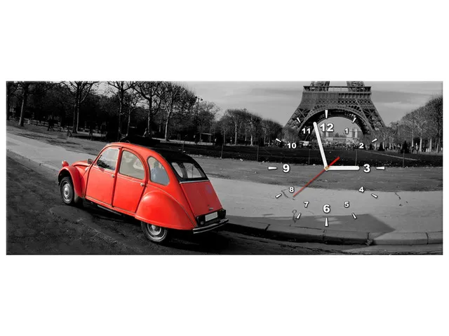 Úvod » Obrazy » Obrazy s hodinami » Obraz s hodinami Červené auto pri Eiffelovej veži