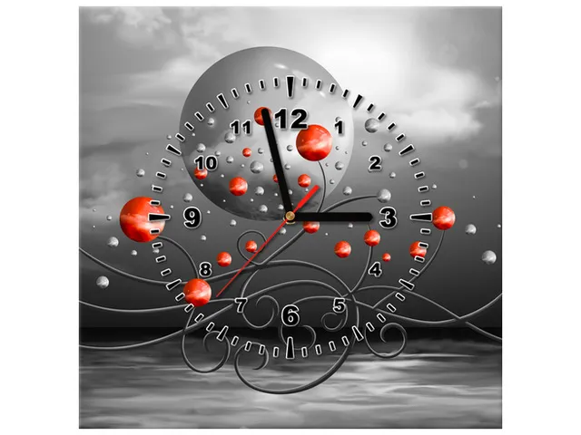 Úvod » Obrazy » Obraz s hodinami Červené gule na sivom pozadí