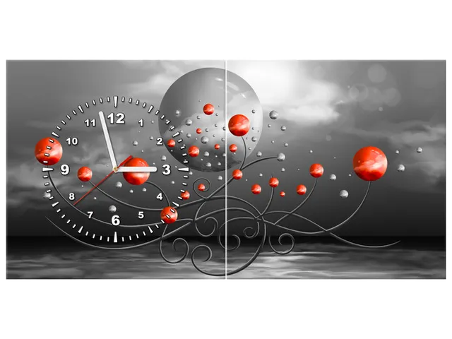 ZP5587A_3A Obraz s hodinami Červené gule na sivom pozadí |