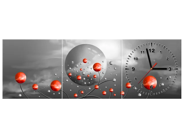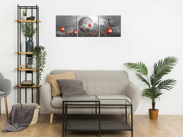 Úvod » Obrazy » Obraz s hodinami Červené gule na sivom pozadí