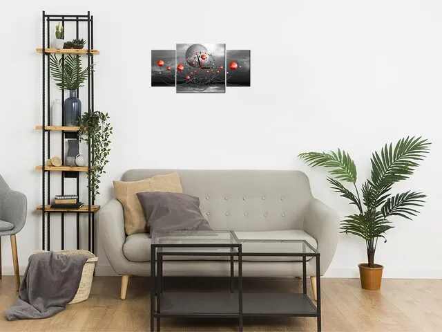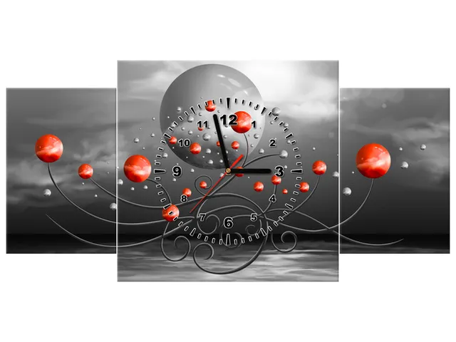 ZP5587A_3K Obraz s hodinami Červené gule na sivom pozadí |