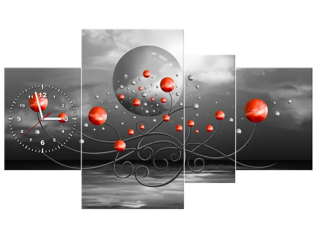 ZP5587A_3K Obraz s hodinami Červené gule na sivom pozadí |