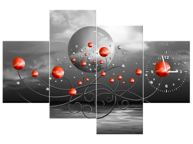 Úvod » Obrazy » Obraz s hodinami Červené gule na sivom pozadí
