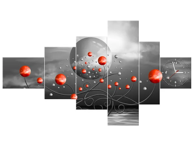 ZP5587A_5B Obraz s hodinami Červené gule na sivom pozadí |