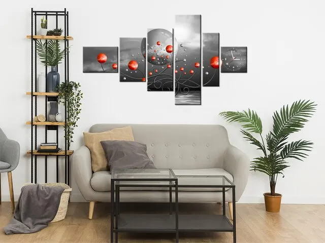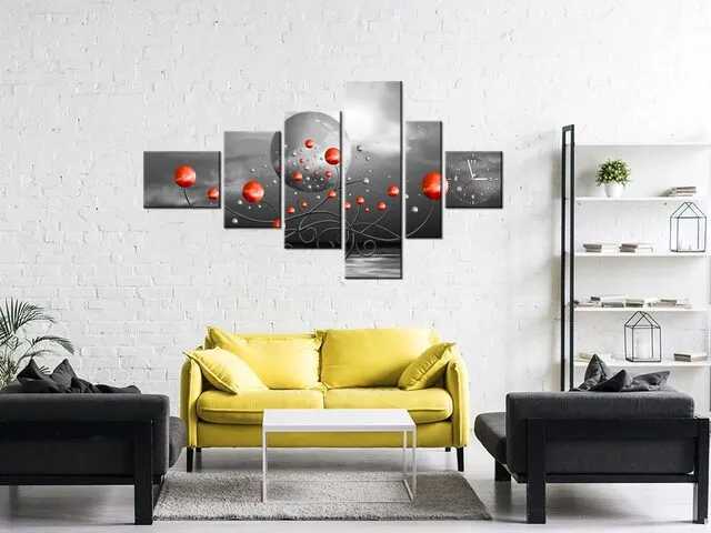 ZP5587A_5H Obraz s hodinami Červené gule na sivom pozadí |