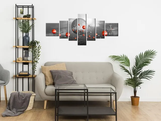 Úvod » Obrazy » Obraz s hodinami Červené gule na sivom pozadí