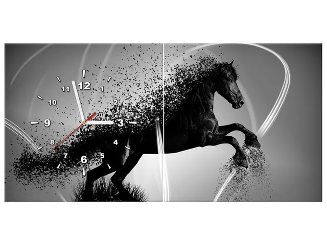 Úvod » Obrazy » Obrazy s hodinami » Obraz s hodinami Čierno biely kôň fragmentácia - Jakub Banas