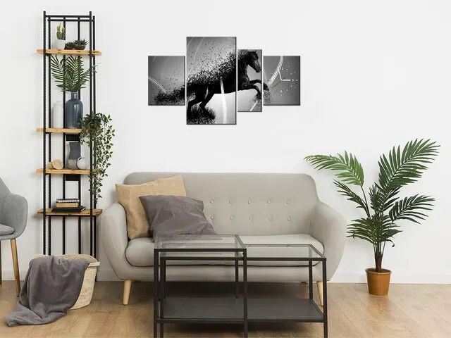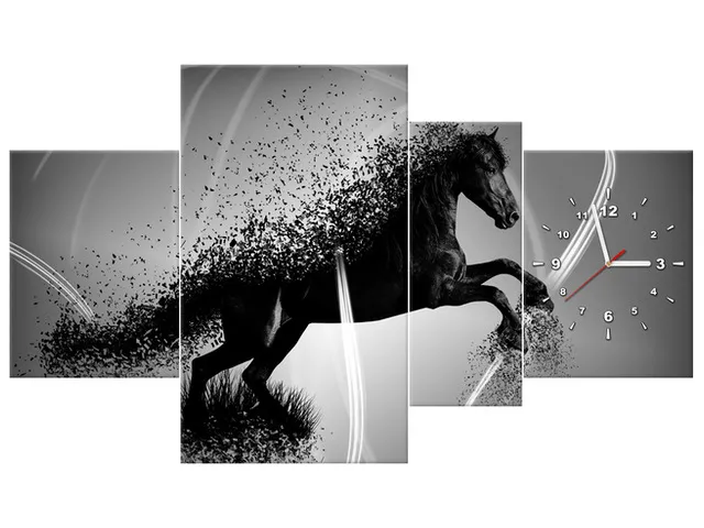 Úvod » Obrazy » Obrazy s hodinami » Obraz s hodinami Čierno biely kôň fragmentácia - Jakub Banas