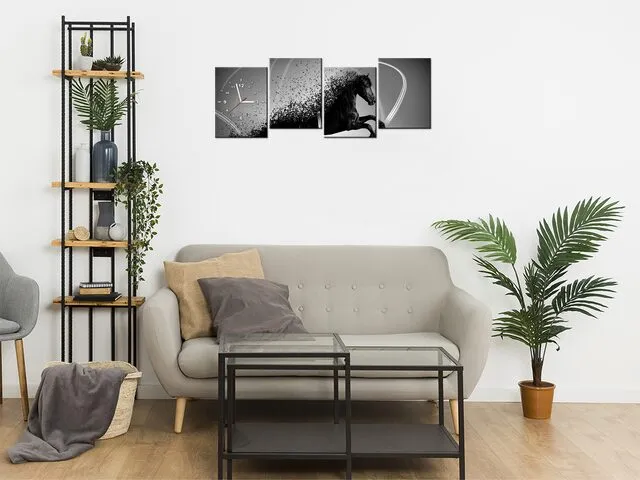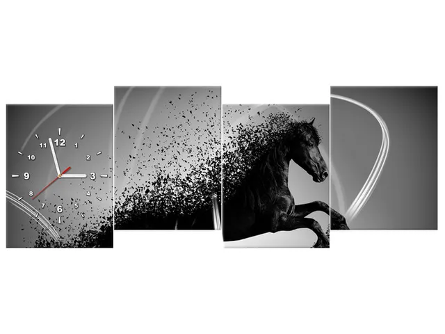 Úvod » Obrazy » Obrazy s hodinami » Obraz s hodinami Čierno biely kôň fragmentácia - Jakub Banas