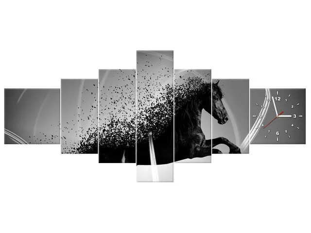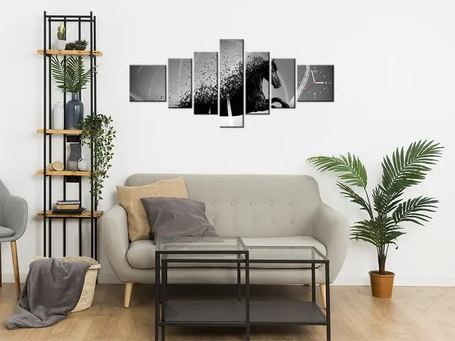 Úvod » Obrazy » Obrazy s hodinami » Obraz s hodinami Čierno biely kôň fragmentácia - Jakub Banas