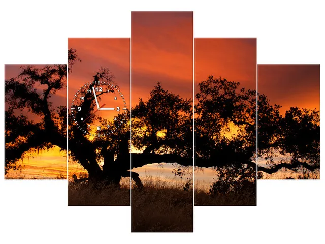 Barion Pixel Obraz s hodinami Dub pri zapadajúcom slnku - Don McCullough