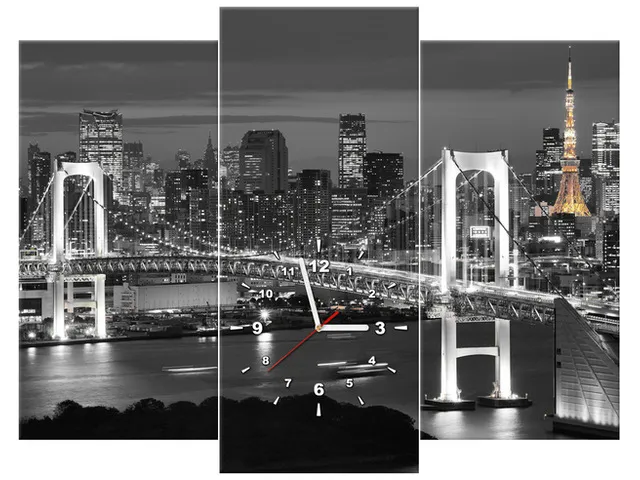 ZP1529A_3K Obraz s hodinami Dúhový most v Tokiu |