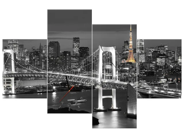 ZP1529A_3C Obraz s hodinami Dúhový most v Tokiu |