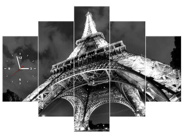 Úvod » Obrazy » Obrazy s hodinami » Obraz s hodinami Eiffelova veža nočný výhľad