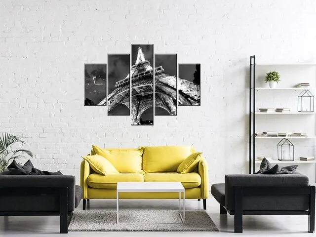 ZP524A_3AW Obraz s hodinami Eiffelova veža nočný výhľad |