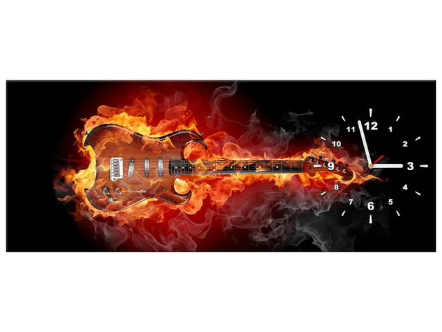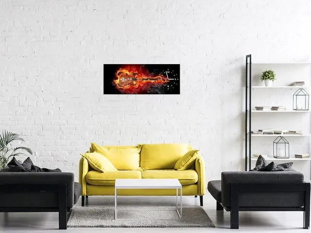 Úvod » Obrazy » Obrazy s hodinami » Obraz s hodinami Horiaca gitara