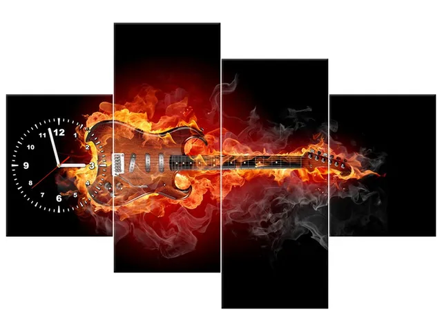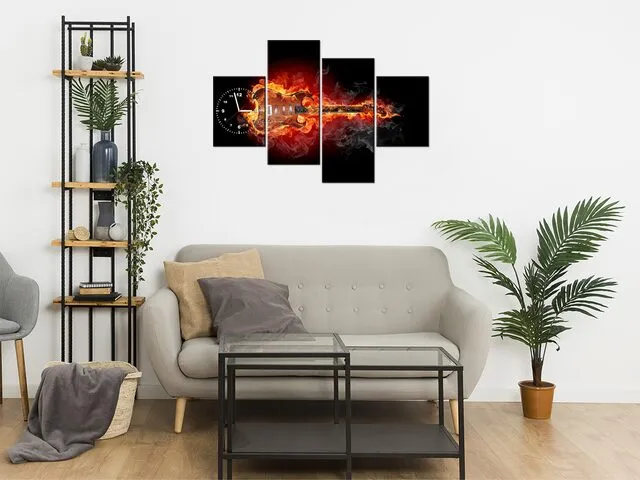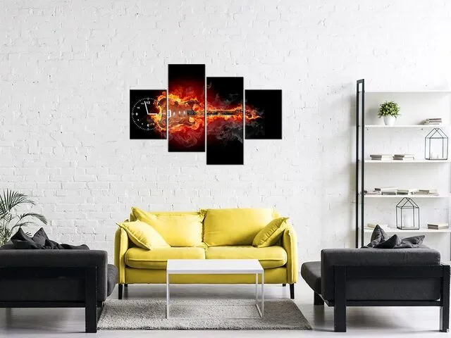 Úvod » Obrazy » Obrazy s hodinami » Obraz s hodinami Horiaca gitara