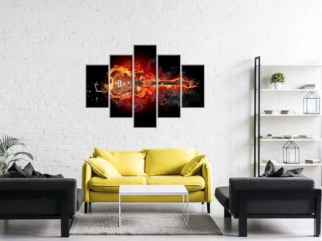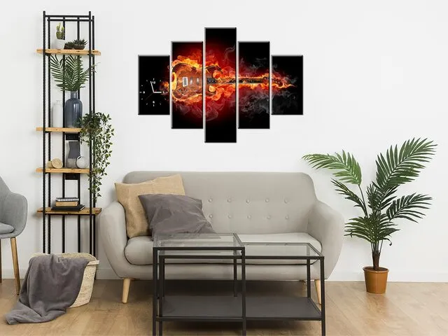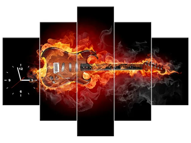 Úvod » Obrazy » Obrazy s hodinami » Obraz s hodinami Horiaca gitara