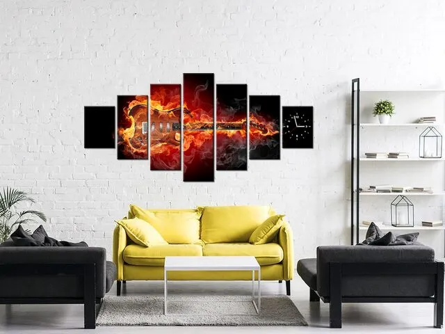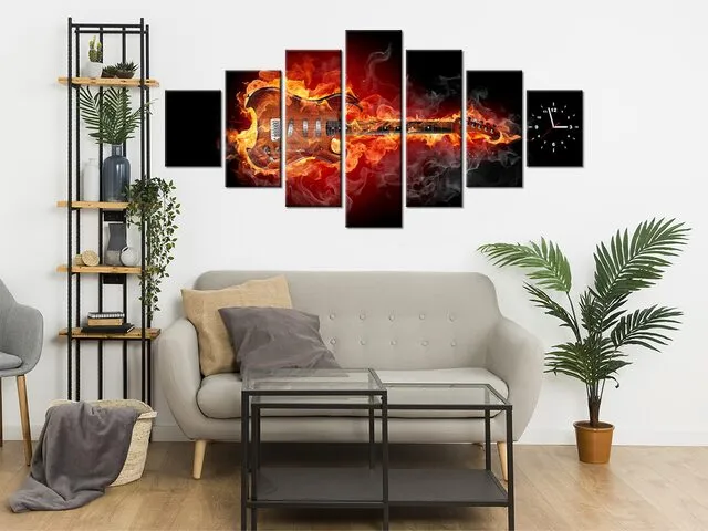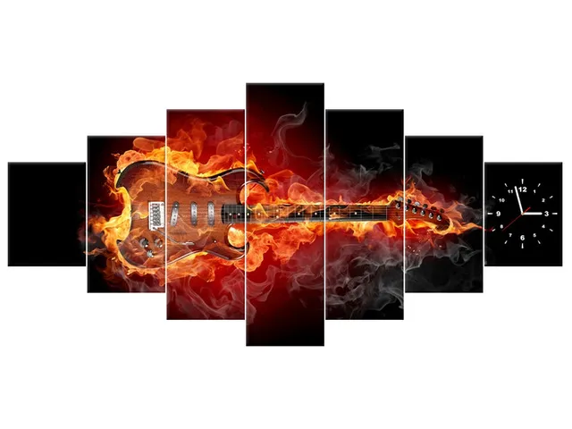 Úvod » Obrazy » Obrazy s hodinami » Obraz s hodinami Horiaca gitara