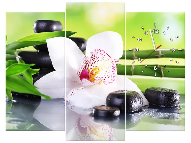 Úvod » Obrazy » Obrazy s hodinami » Obraz s hodinami Kamene SPA a orchidea
