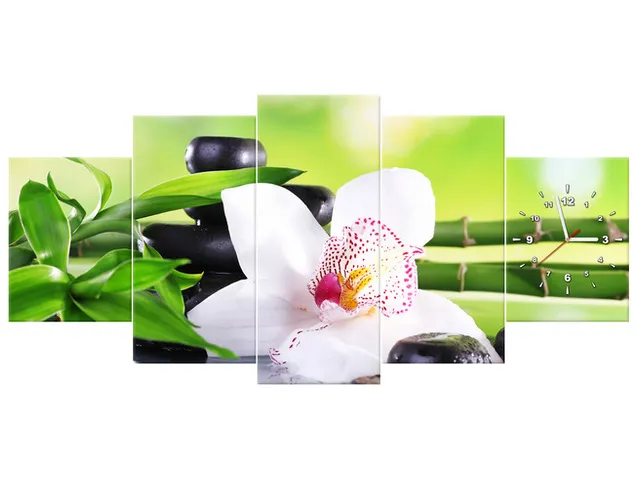 Úvod » Obrazy » Obrazy s hodinami » Obraz s hodinami Kamene SPA a orchidea