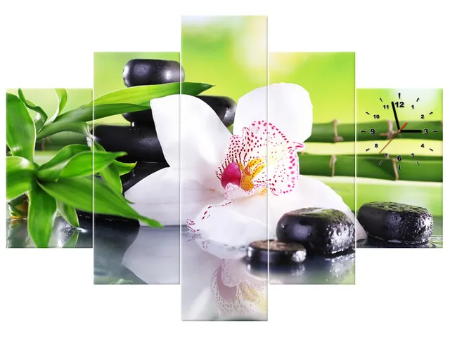 Úvod » Obrazy » Obrazy s hodinami » Obraz s hodinami Kamene SPA a orchidea