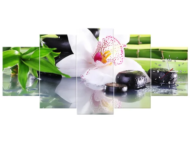 Úvod » Obrazy » Obrazy s hodinami » Obraz s hodinami Kamene SPA a orchidea