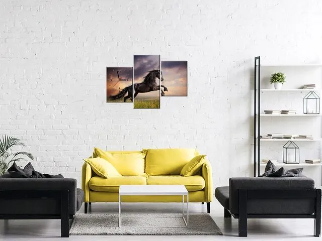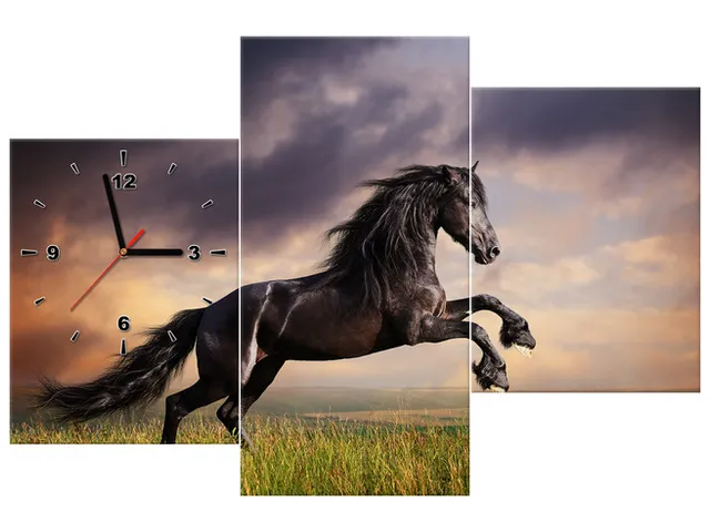 Úvod » Obrazy » Obrazy s hodinami » Obraz s hodinami Kôň dvíhajúci sa na zadné