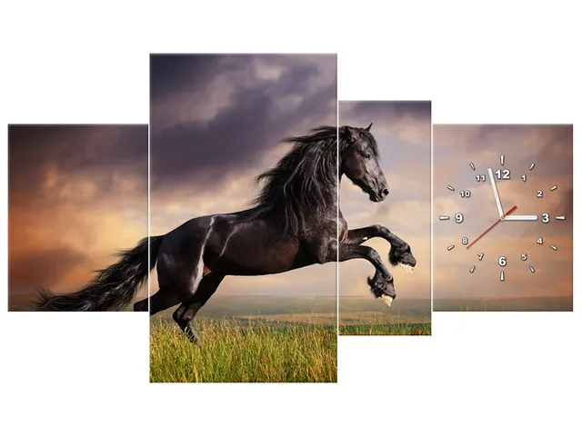 Úvod » Obrazy » Obrazy s hodinami » Obraz s hodinami Kôň dvíhajúci sa na zadné