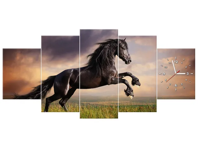 Úvod » Obrazy » Obrazy s hodinami » Obraz s hodinami Kôň dvíhajúci sa na zadné