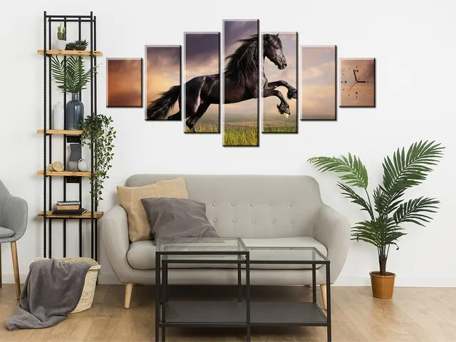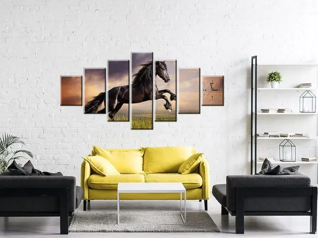 Úvod » Obrazy » Obrazy s hodinami » Obraz s hodinami Kôň dvíhajúci sa na zadné