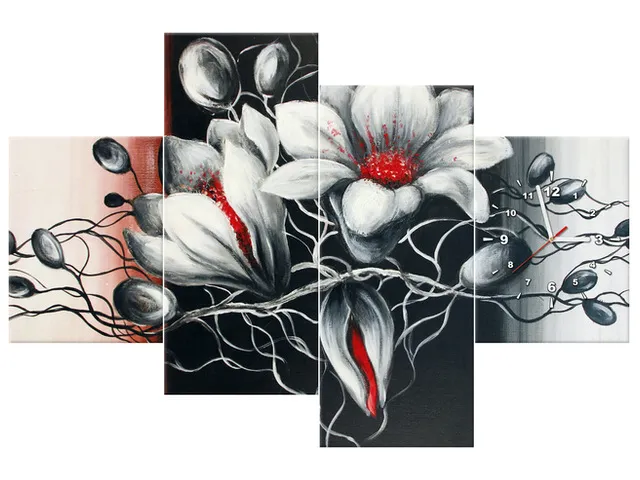 Úvod » Obrazy » Obrazy s hodinami » Obraz s hodinami Kvetinová sivá