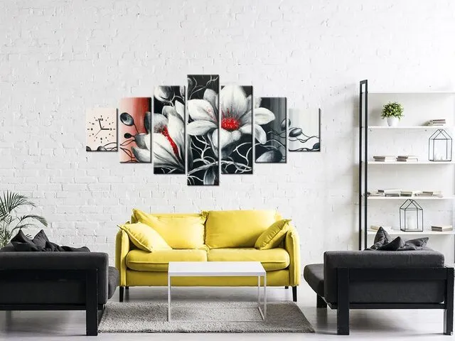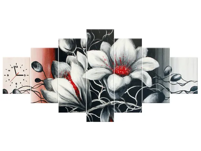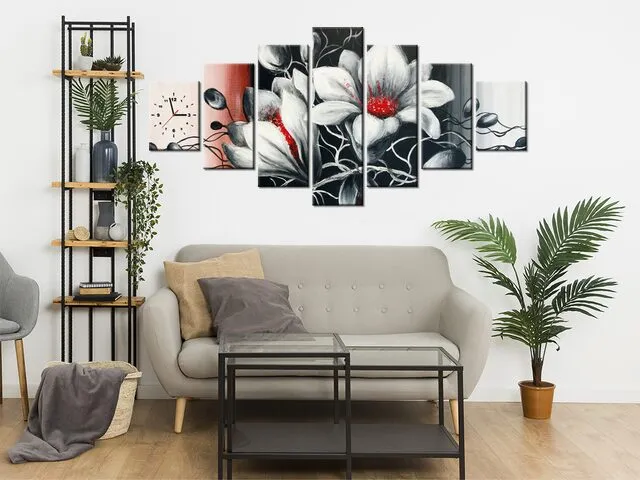 Barion Pixel Obraz s hodinami Kvetinová sivá
