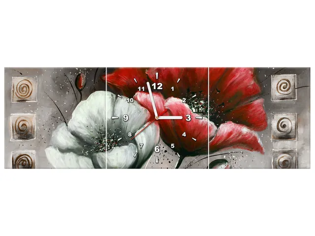 Úvod » Obrazy » Obrazy s hodinami » Obraz s hodinami Maľované vlčie maky červenej a hnedej farby
