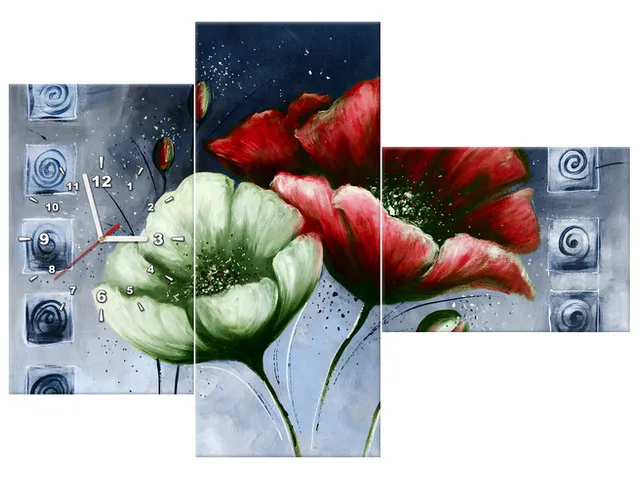 Barion Pixel Obraz s hodinami Maľované vlčie maky v červenej a zelenej