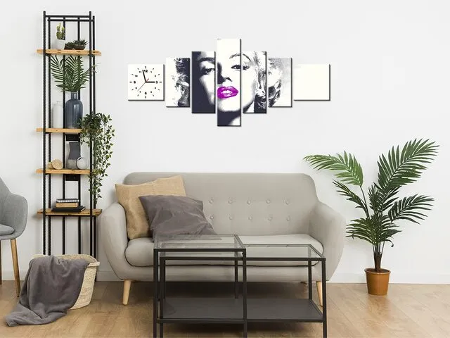 Úvod » Obrazy » Obrazy s hodinami » Obraz s hodinami Marilyn Monroe s fialovými perami