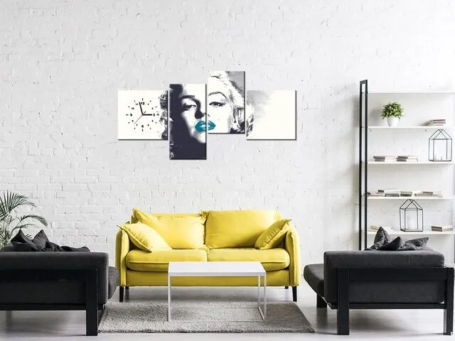 Úvod » Obrazy » Obrazy s hodinami » Obraz s hodinami Marilyn Monroe tyrkysovými perami