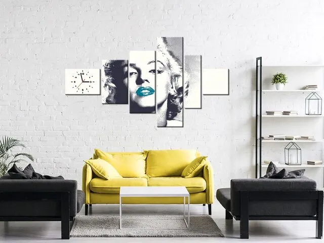 Úvod » Obrazy » Obrazy s hodinami » Obraz s hodinami Marilyn Monroe tyrkysovými perami