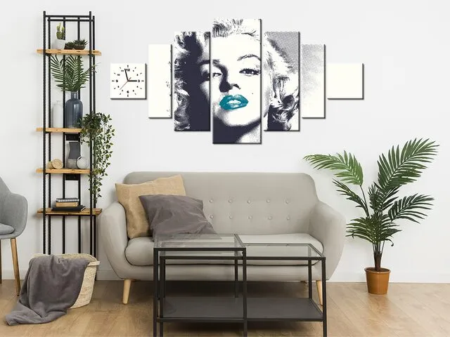 Úvod » Obrazy » Obrazy s hodinami » Obraz s hodinami Marilyn Monroe tyrkysovými perami