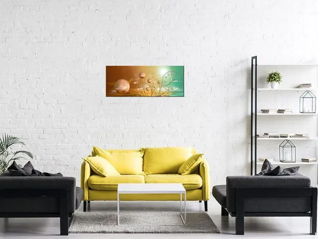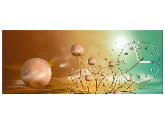 ZP5594A_3V Obraz s hodinami Medené gule - Polárna žiara |