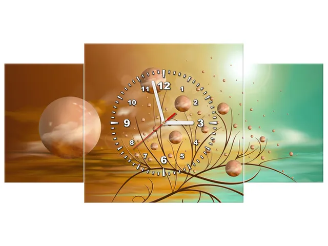 ZP5594A_3V Obraz s hodinami Medené gule - Polárna žiara |