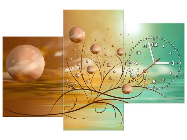 ZP5594A_3V Obraz s hodinami Medené gule - Polárna žiara |