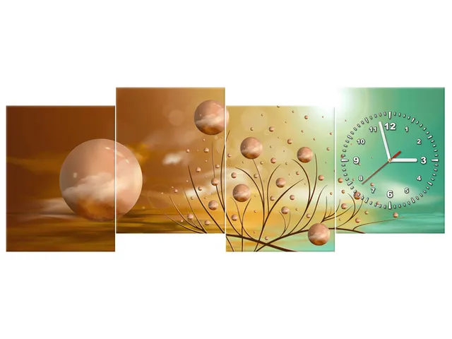 ZP5594A_3AX Obraz s hodinami Medené gule - Polárna žiara |