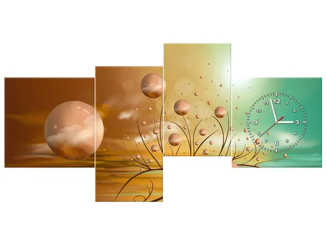 ZP5594A_4AN Obraz s hodinami Medené gule - Polárna žiara |