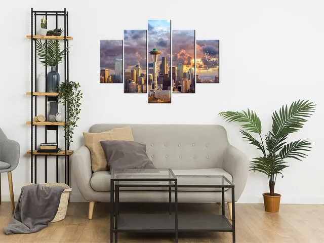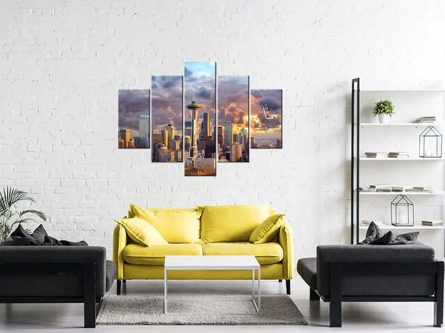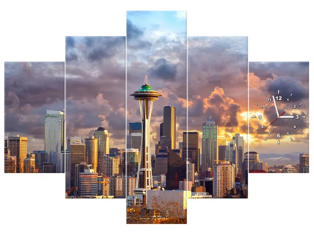 Úvod » Obrazy » Obrazy s hodinami » Obraz s hodinami Mesto Seattle pri západe slnka