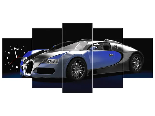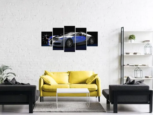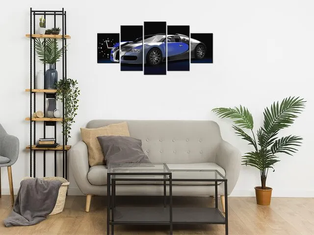 ZP2378A_3K Obraz s hodinami Modré Bugatti Veyron |