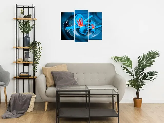 ZP3575A_3K Obraz s hodinami Modré kozmické kvety - Jakub Banas |